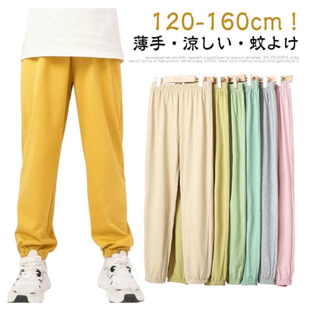 | 120-160cm!【薄手・涼しい・蚊よけ】薄手の生地で春夏でも涼しく履けるロングパンツ。 ウェストと裾が柔らかいゴムで締まって、長時間着用しても窮屈さなどは一切なく楽です。 薄手のタイプで、涼しく穿きこなせるから真夏でも快適に着こなせるのも嬉しいポイントです。 綿素材で肌に優しく、真夏の日焼け対策や蚊対策などにもぜひお薦めな1本です。 ストレッチが効き、通気性抜群!通学 通園 普段着 お出かけなどに活躍! トレンド感のあるアイテムを合わせてスタイリッシュに着こなすのもおすすめです。 | |