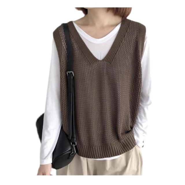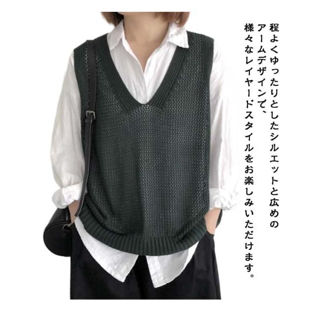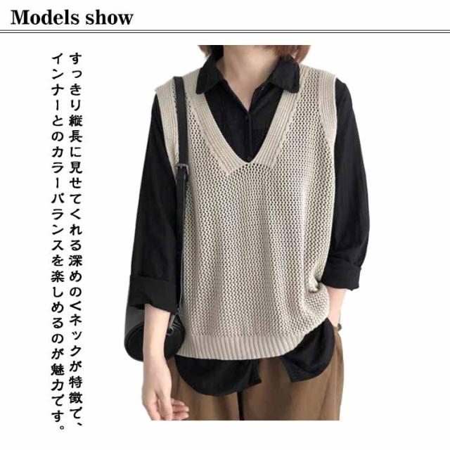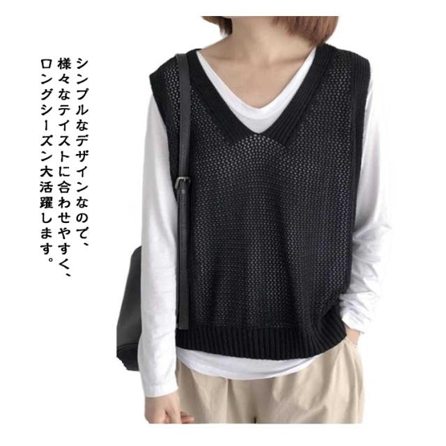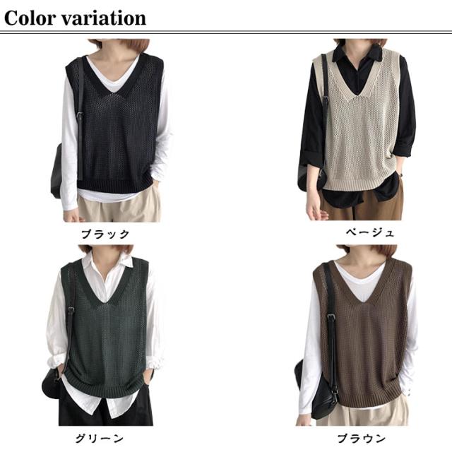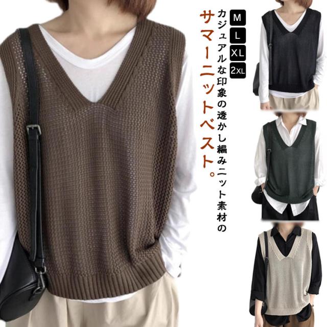 レイヤード Vネック 重ね着 ニットジレ 薄手ニット プルオーバーベスト レディース おしゃれ トップス サマーベスト 春夏 レディース ニットベスト ノースリーブ カジュアル メッシュベスト セーター ゆったり 体型カバー 冷房対策 無地 シンプル 大きいサイズ