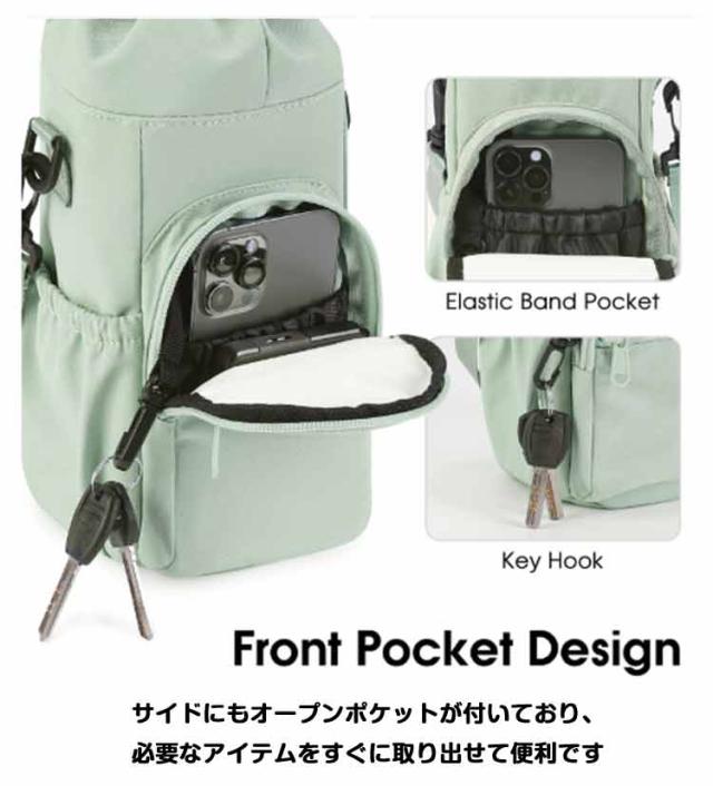 フロントポケット ショルダー 自転車 水筒ホルダー おしゃれ マグボトルカバー ペットボトルホルダー 斜めがけ 肩掛け ナイロン レディース 水筒ケース スマホポーチ ボトルケース 大容量 水筒カバー 撥水 丈夫 通勤 キッズ