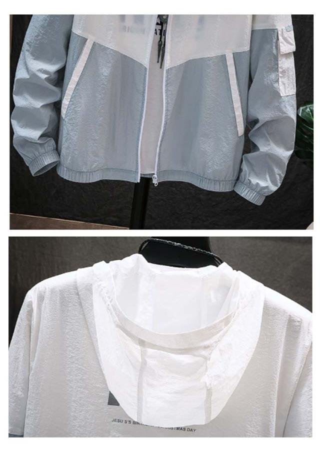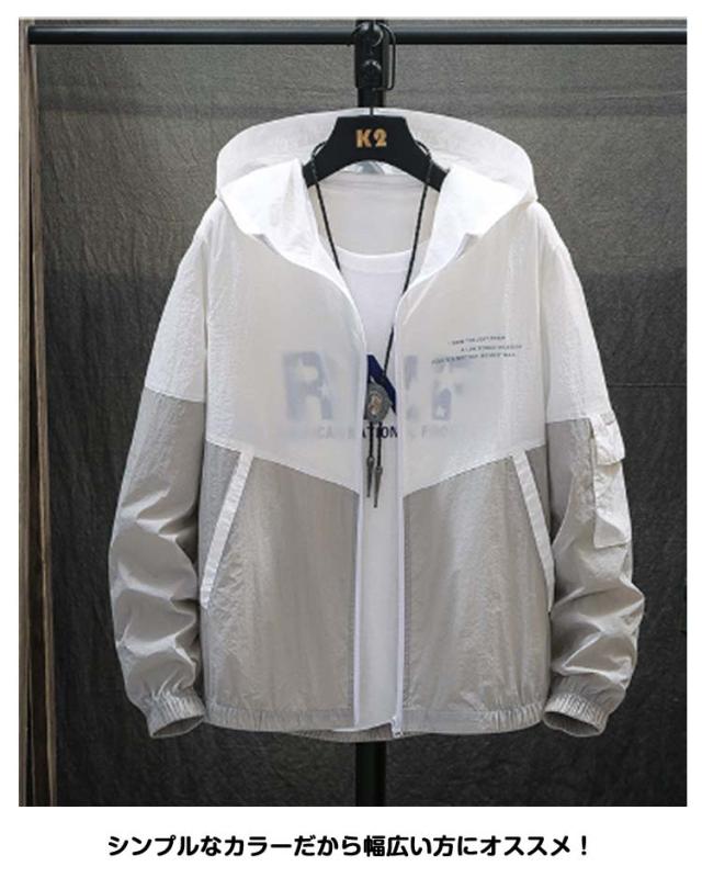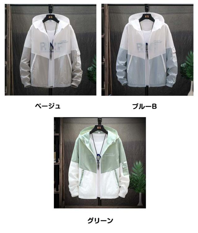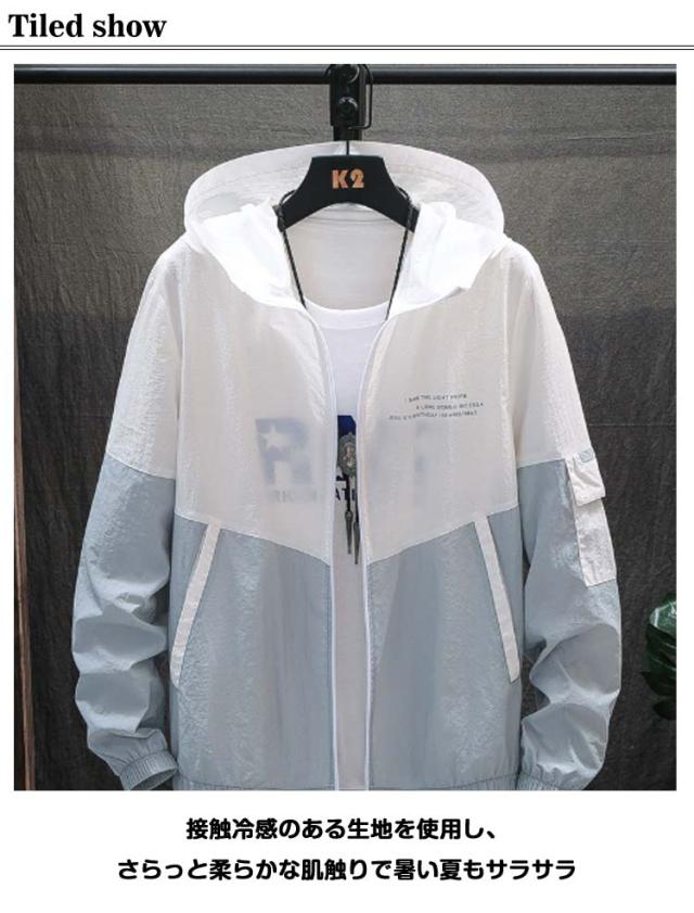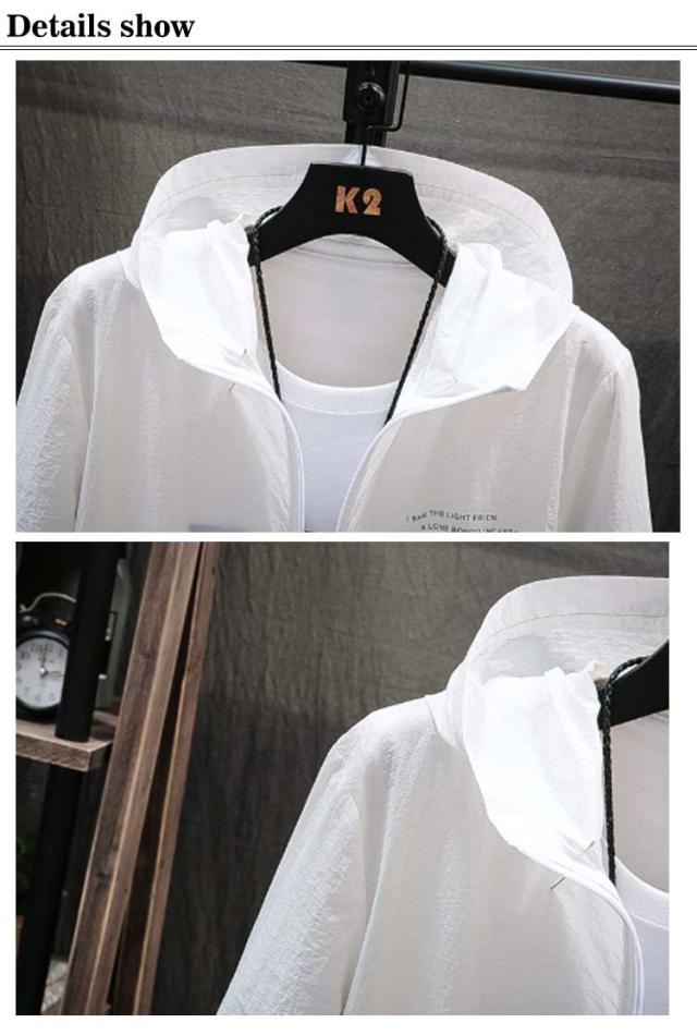 | 着るだけで紫外線対策!メンズ夏用薄手軽量UVカットパーカー! 接触冷感のある生地を使用し、さらっと柔らかな肌触りで暑い夏もサラサラ 速乾性に優れた素材で、汗や水を吸収していつでもサラサラの着心地。また、軽量・コンパクトでかばんの中にも入れとけて、持ち運びもラクラク! シンプルなカラーだから幅広い方にオススメ! 通勤通学の時も日焼け止め用服としてtシャツの上に羽織るのもいいですし、寒すぎる冷房の中に必須のアウターとしても便利です。 | |