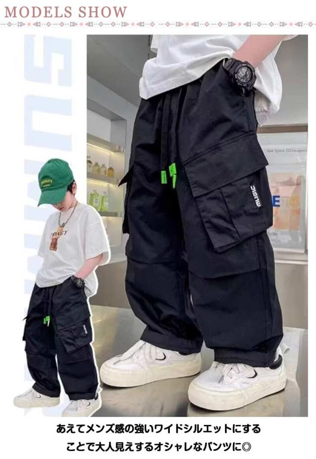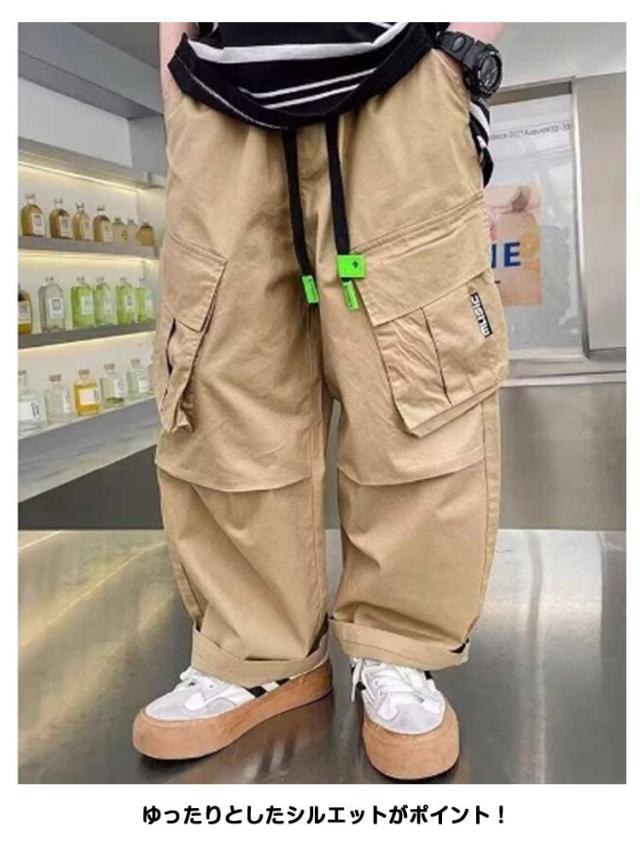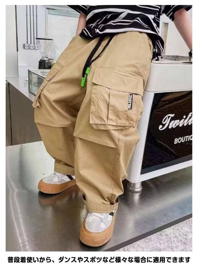 120 カーゴパンツ 送料無料 ジュニア ビッグポケット ワイドパンツ ワイドパンツ チノパンツ ゆったり 男の子 長ズボン 通学 ダンス衣装 ウエストゴム 子ども服 子供服 hiphop ストリート ワークパンツ カジュアル ボトムス 通園 キッズ 130 140 150