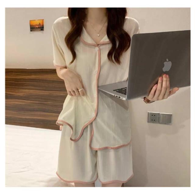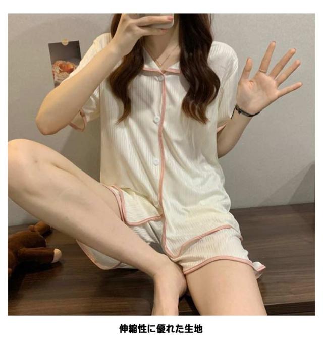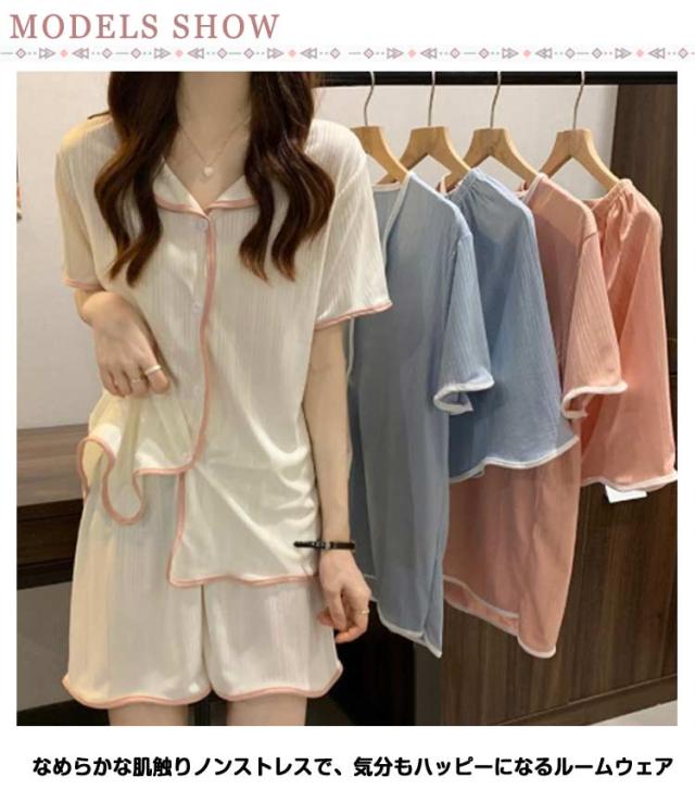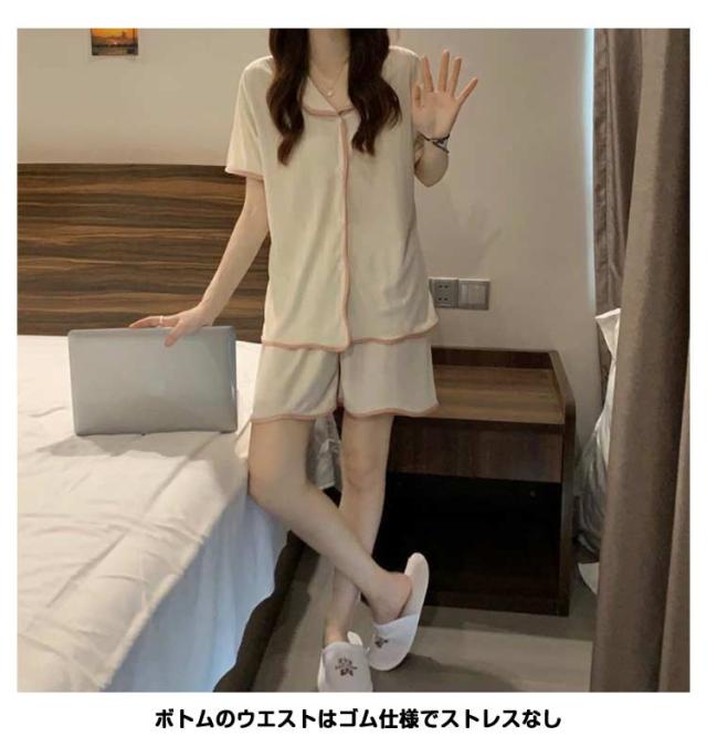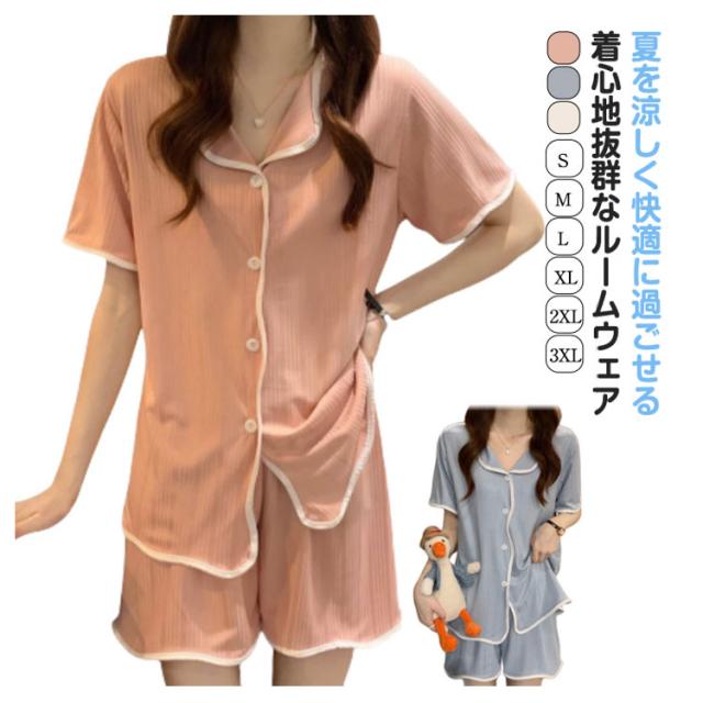 レディース 前開き 半袖パジャマ パジャマ ばくね 夏 かわいい 半袖 伸縮性 夏用パジャマ 冷感 部屋着 上下セット 大人用 可愛いパジャマ 半袖 ショートパンツ 無地 セットアップ ストレッチ性 ナイトウェア 可愛いパジャマ 大きい