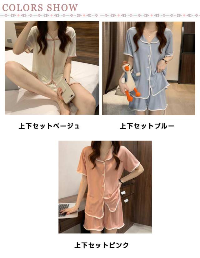 半袖パジャマ 大人用 夏 半袖 前開き セットアップ かわいい 半袖 伸縮性 パジャマ 夏用パジャマ 部屋着 上下セット レディース 冷感 大人用 ショートパンツ 無地 可愛いパジャマ ストレッチ性 ナイトウェア 可愛いパジャマ 大きい