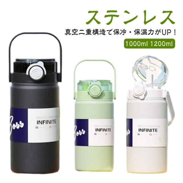 水筒 おしゃれ 真空断熱 保冷 スポーツジャグ 1.2L 保温 1L 大容量 携帯 ステンレスボトル 直飲み ストロー付き スポーツジャグ ハンドル付き 洗いやすい 軽量 魔法瓶 マグボトル 大人 キッズ 子供 スポーツ アウトドア キャンプ