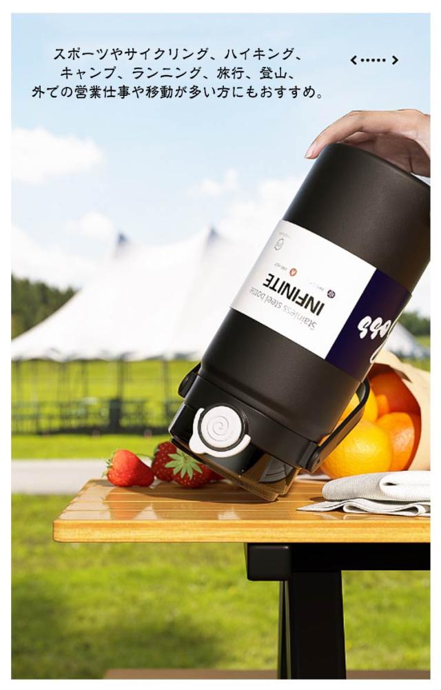 | ステンレス真空二重構造で保冷・保温力がUP!飲み物の温度を長時間キープ。大容量 スポーツジャグ。 広口タイプだから大きな氷もラクラク入ります。 ハンドル付きで、持ち運びに便利です。 スポーツやサイクリング、ハイキング、キャンプ、ランニング、旅行、登山、外での営業仕事や移動が多い方にもおすすめ。 | |