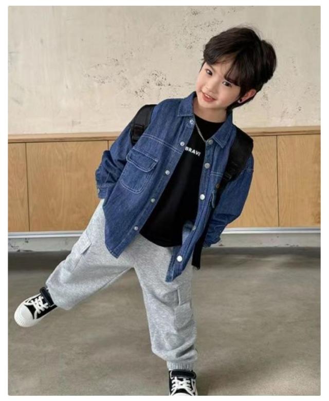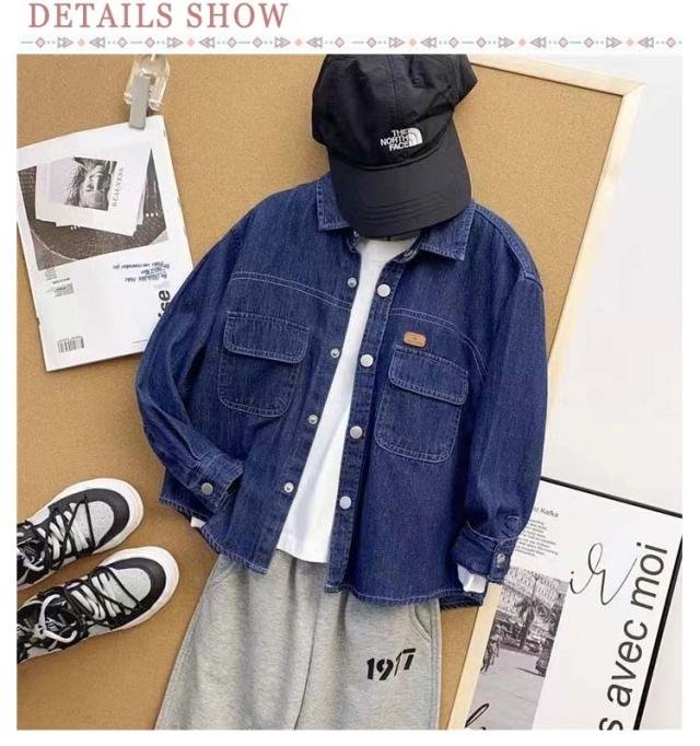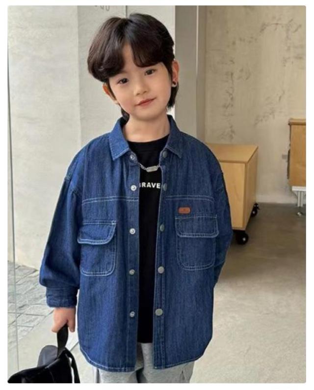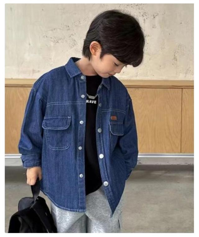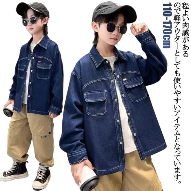 キッズ 子供服 長袖 ジュニア カジュアルシャツ デニムシャツ 秋物 アウター 男の子 送料無料 通園 通学 トップス お洒落 春物 デニム 羽織り 春 秋 韓国風 トップス デニム ジージャン ジュニア 小学生 キッズ服 ゆったり 無地 通学