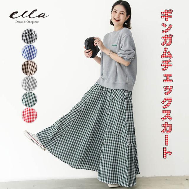 スカート ギンガムチェック 赤 マキシ丈 レディース カジュアル 大人 可愛い きれいめ ロングスカート 薄手 ゆったり 大きいサイズ ロング丈 ボトムス シンプル 体型カバー 20代 30代 40代 50代 ウエストゴム 脚長効果 ストレスフリー お出掛け Aライン 生地 プレゼント チェック ブラック 黒 ブルー 青 ブラウン 茶 グレー 灰 グリーン 緑 レッド M L rt0002