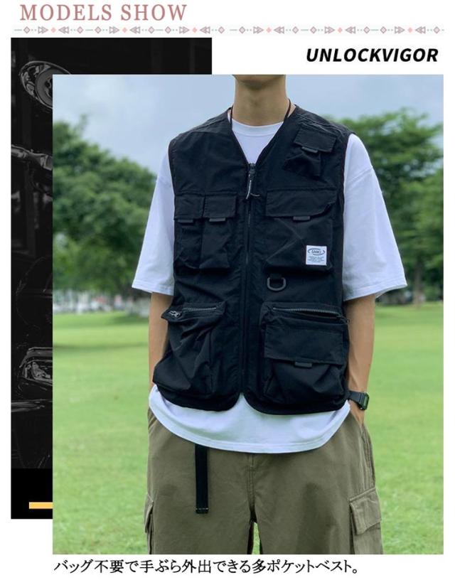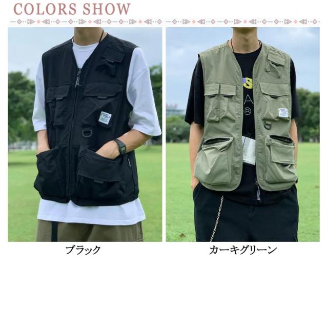 撮影 多ポケットベスト ミリタリー メンズ 仕事 アウトドア ベスト レディース アウター 男女兼用 作業着 ミリタリー 作業服 フィッシングベスト 旅行 釣り ベスト 通勤 多機能 前開 ジレベスト カジュアル ブラック カーキグリーン
