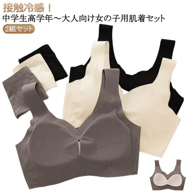 ブラジャー キッズ アンダーウェア 冷感 無地 上下セット 子供 2組セット 可愛い 接触冷感 カップ付き パンツ ブラ インナー ジュニアブラ 涼しいブラ 夏 シームレス ノンワイヤー 女の子 パッド付き 肌着 ブラジャー 中学生 スポーツブラ 2組セット 下着 ショーツ
