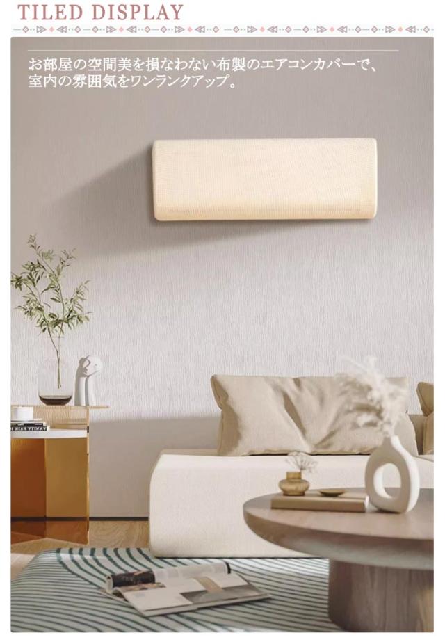 | 中身も見た目も綺麗に飾る♪エアコンカバー 2つのサイズ展開で、幅広い機種に対応可能。 お部屋の空間美を損なわない布製のエアコンカバーで、室内の雰囲気をワンランクアップ。 汚れや黄ばみが気になるエアコンを、おしゃれなインテリアとして生まれ変わらせます。 伸縮性のあるストレッチ生地で、様々な機種にぴったりフィットする優れた使い勝手。 洗濯可能な素材だから、いつでも清潔な状態を保てるのも魅力です。 室内機カバーとしての機能性を備えながら、インテリアとしての調和も実現。 通気性の良いメッシュ素材で、エアコンの性能を損なわずにホコリをシャットアウト。 空調ダストカバーとしての実用性と、デザイン性を両立した新発想のアイテム。 | |