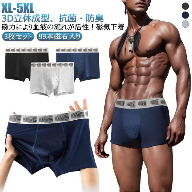 綿 抗菌防臭 メンズ 健康増進 男性下着 磁気 ボクサーパンツ メンズ マッサージの磁気下着 磁気パンツ コットン ボクサーパンツ 3枚組 99本入り メンズ 下着 男性 パンツメンズ下着 パンツ インナー 快適 蒸れない 柔らか 男性用