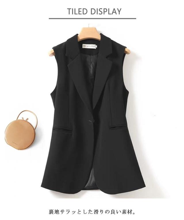 秋 夏 ジレ ベスト 春 テーラードベスト レディース スーツ ロングベスト ロング フォーマル おしゃれ ノースリーブ ベスト テーラード シンプル 羽織り 無地 きれいめ カジュアル レイヤード フェミニン