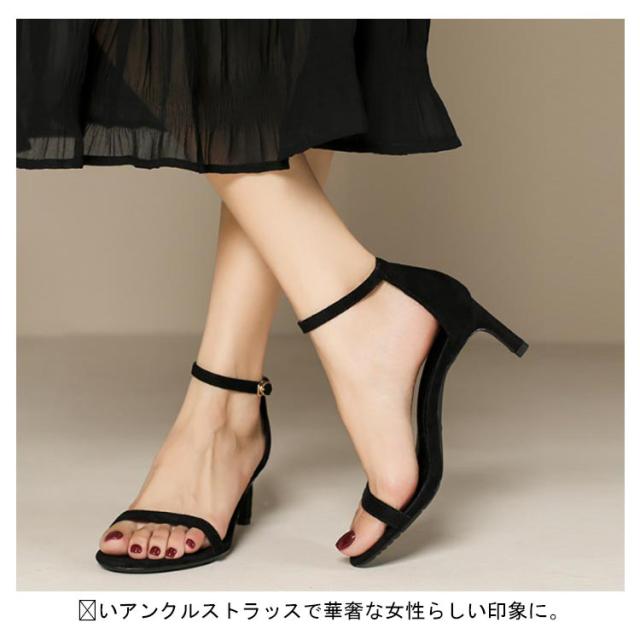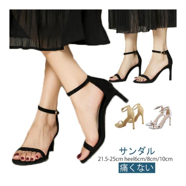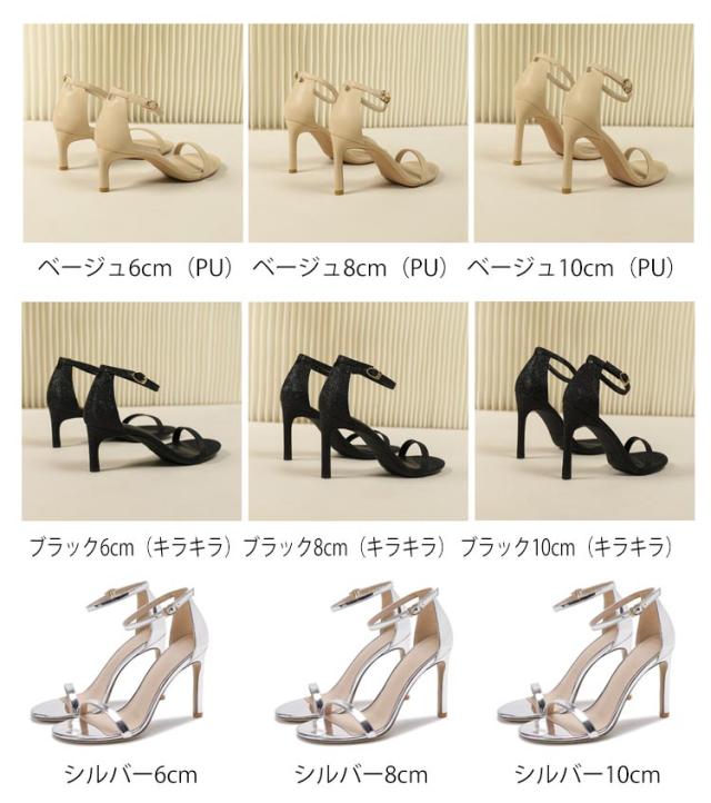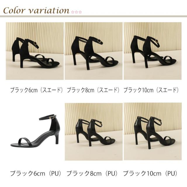 サンダル 6cm 歩きやすい 21.5cm 8cm 10cm 美脚 ハイヒール ピンヒール レディース スエード 合成皮革 履きやすい サンダル おしゃれ 痛くない 大きいサイズ アンクルストラップ 光沢 25.0cm サンダル 黒 白 シルバー