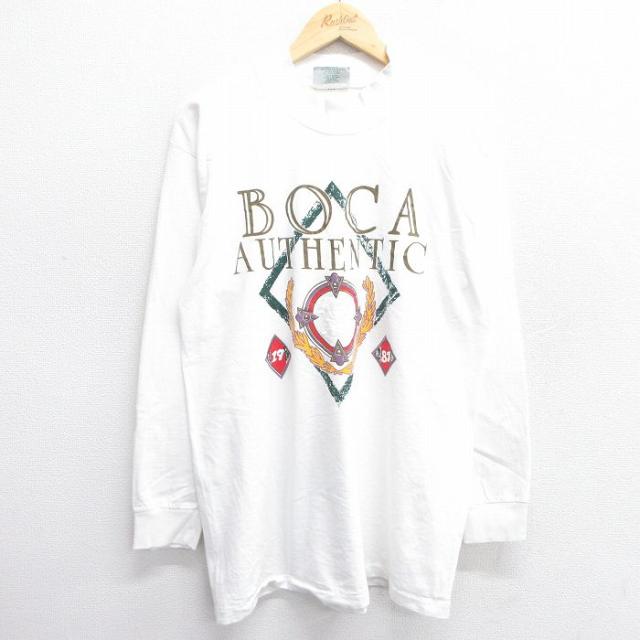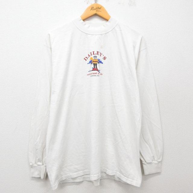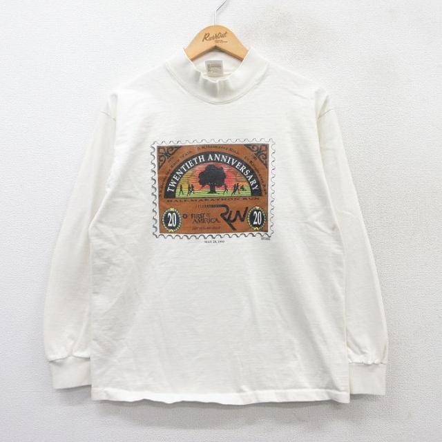 古着 長袖 ビンテージ Tシャツ メンズ 90年代 90s バレーボール コットン クルーネック 白 ホワイト Lサイズ 中古 中古 古着