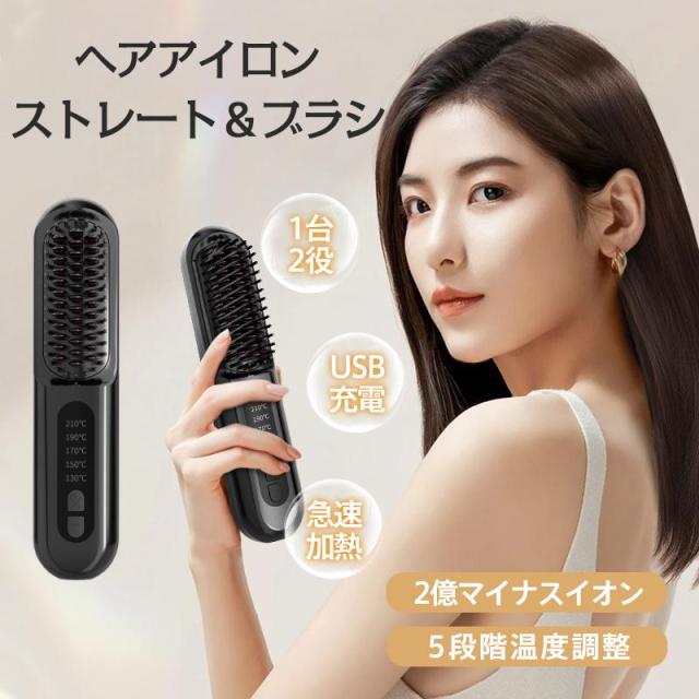 ヘアアイロンブラシ ヘアアイロン ヘアブラシ 5段階温度調節 ストレートアイロン 旅行用 コードレス カール USB充電式 恒温 マイナスイオン 加熱
