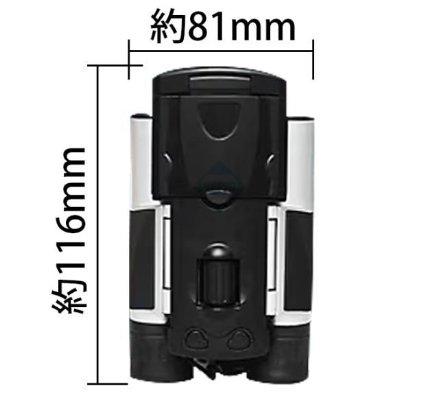 倍率10倍(双眼鏡)、デジタルズーム8倍(液晶、撮影時)の双眼鏡が録画が可能。
