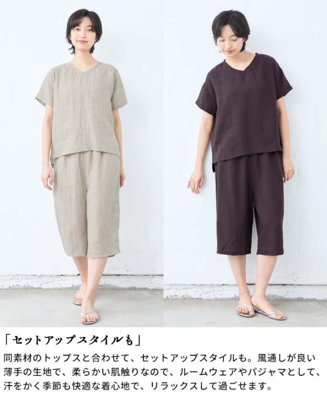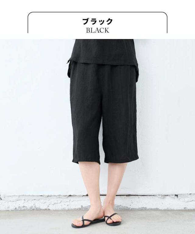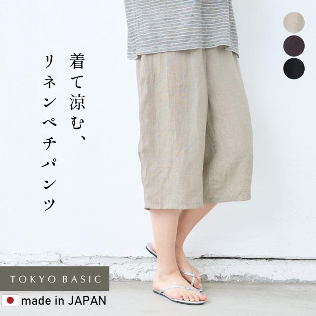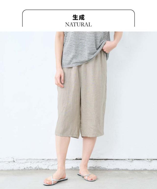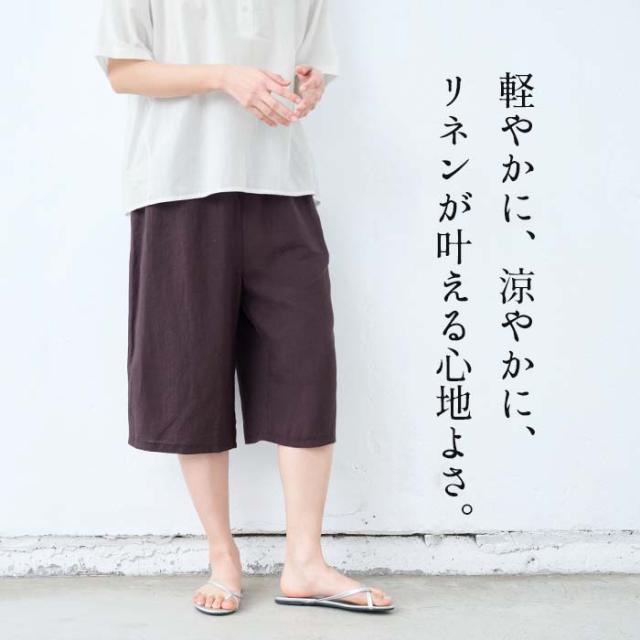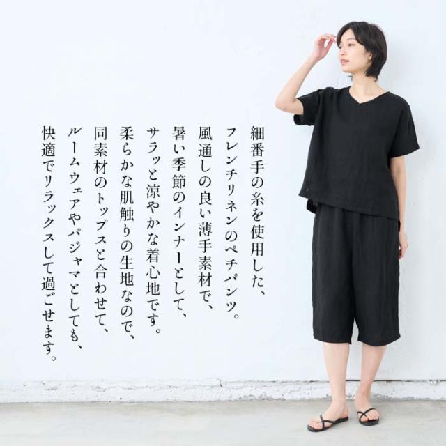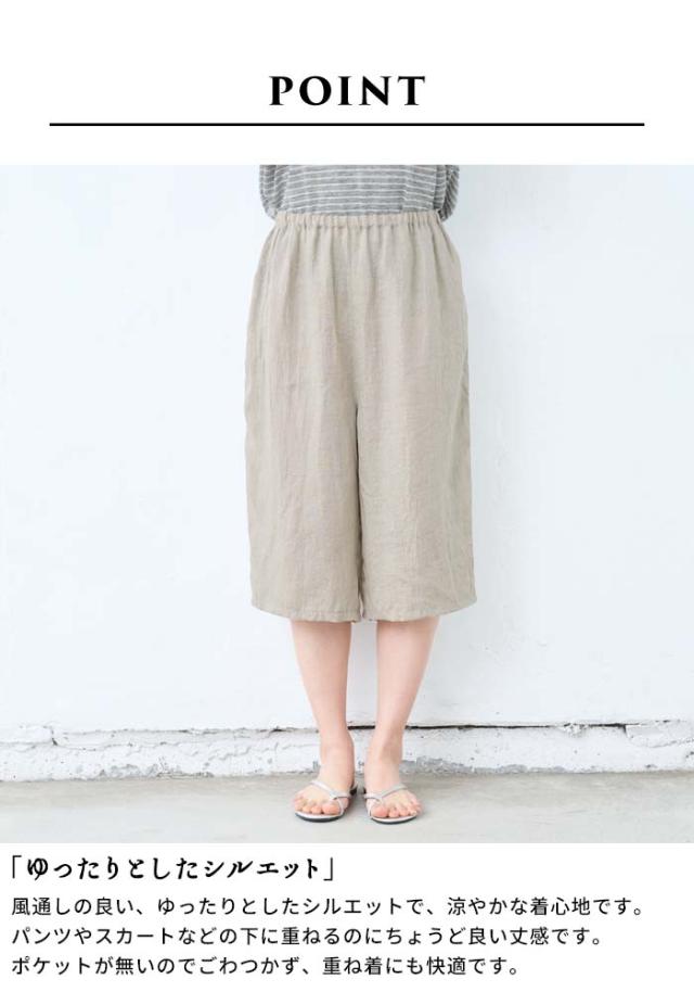 60番手 フレンチリネン100% クロップド ペチパンツ 日本製 / リネン インナーパンツ ペチパンツ ハーフ 40代 50代 60代 涼しい 麻100% 重ね着 レイヤード ゆったり イージーパンツ ルームウェア パジャマ 速乾 抗菌 ウエストゴム 春 夏