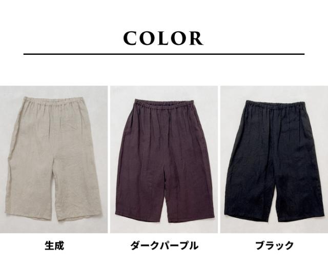 リネン インナーパンツ ハーフ 60番手 フレンチリネン100% クロップド ペチパンツ 日本製 40代 50代 60代 涼しい 麻100% 重ね着 レイヤード ゆったり イージーパンツ ルームウェア パジャマ 速乾 抗菌 ウエストゴム 春 夏 フレンチリネン リネン100% ぺチ 麻100 ハーフパンツ 部屋着 汗取り ナチュラル 生成 ブラック ダークパープル ベージュ 黒 パープル スミクロ