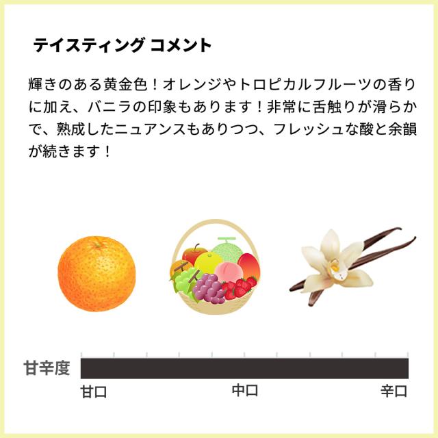 ![]() ■ぶどう品種:アルネイス種100% ■発酵・熟成:オーク樽18ヶ月熟成 (225L、新樽比率50%) +瓶熟4ヶ月以上 造り手は、1900年初頭、ワイン造りの伝統が根付いたピエモンテ州のランゲとロエロの丘陵にワイナリーを設立した銘醸造り手!「熟成されてこそ、ネッビオーロは真の実力を発揮する」という信念のもと、「飲み頃になるまで出荷はされず、また飲み頃を過ぎたものは販売しない」というフィロソフィーを貫く非常に長い歴史のあるワイナリー、カーサ・ヴィニコラ・ニコレッロ! このロエロ・アルネイス・ヴィーニャ・ポディオ[2016]年は、砂質土壌の樹齢25~30年のアルネイス種100%をステンレスタンク醗酵!オーク樽熟成 18ヶ月 (225L、新樽比率50%) 、瓶熟成4ヶ月以上で造られる極旨辛口白ワイン! 輝きのある黄金色!オレンジやトロピカルフルーツの香りに加え、バニラの印象もあります!非常に舌触りが滑らかで、熟成したニュアンスもありつつ、フレッシュな酸と余韻が続きます! カーサ・ヴィニコラ・ニコレッロの特徴である“飲み頃”のロエロ・アルネイスの樽熟成白ワインが限定で少量入荷!イタリア辛口白ワインファンにぜひお試しいただきたい1本です! |