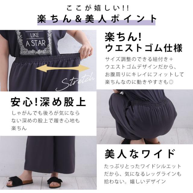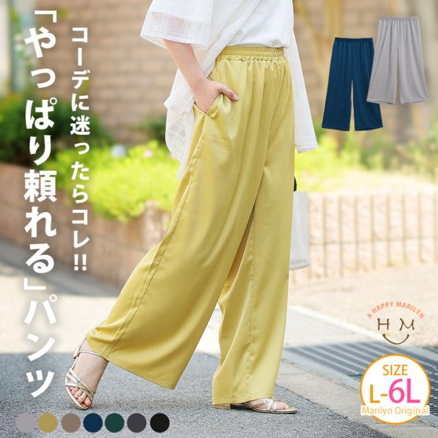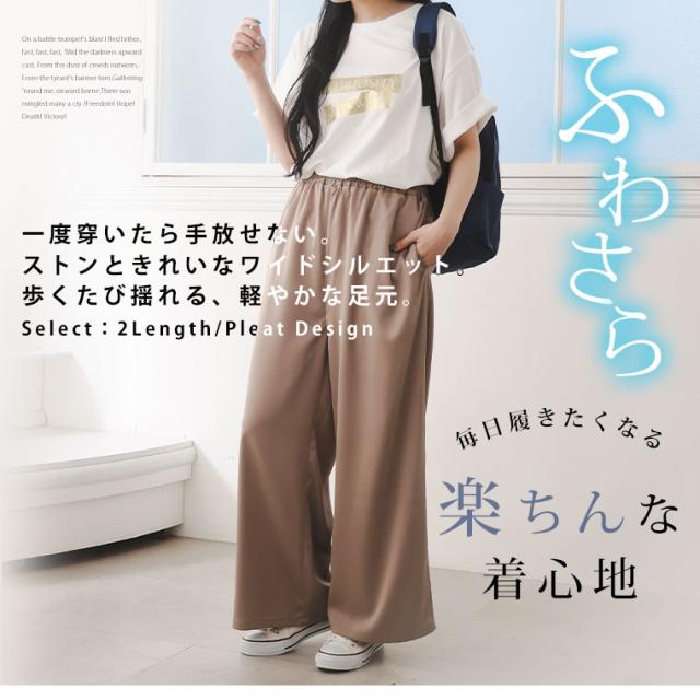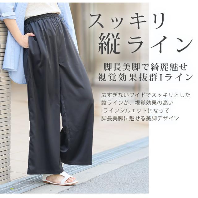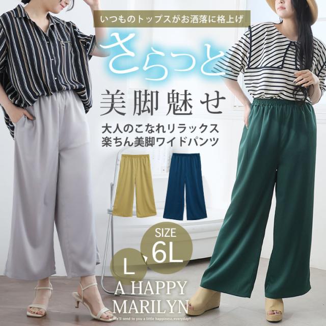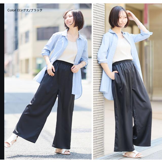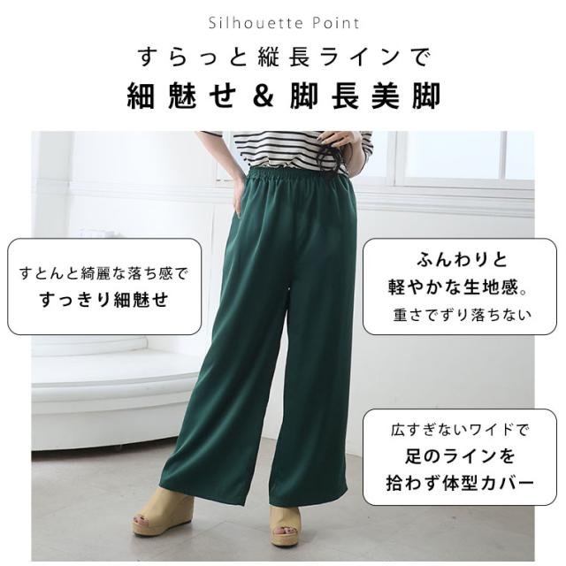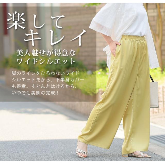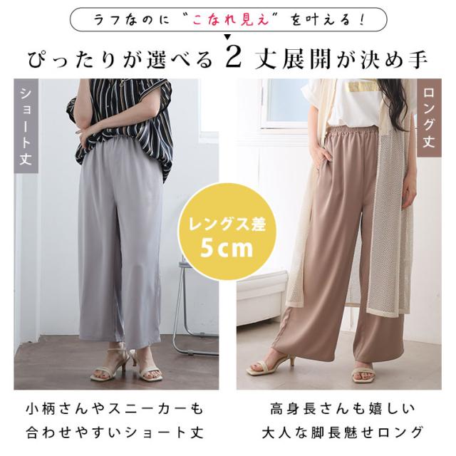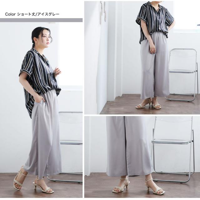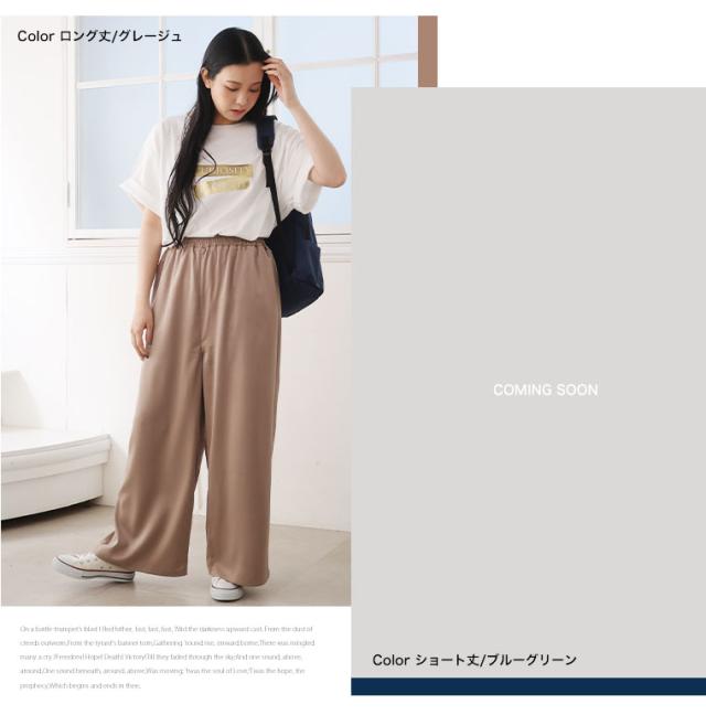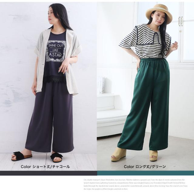 新作 大きいサイズ レディース パンツ | 選べる2丈 なめらか心地良い、コーデの救世主 サテンライク ワイドパンツ [503007] LL 3L 4L 5L 6L