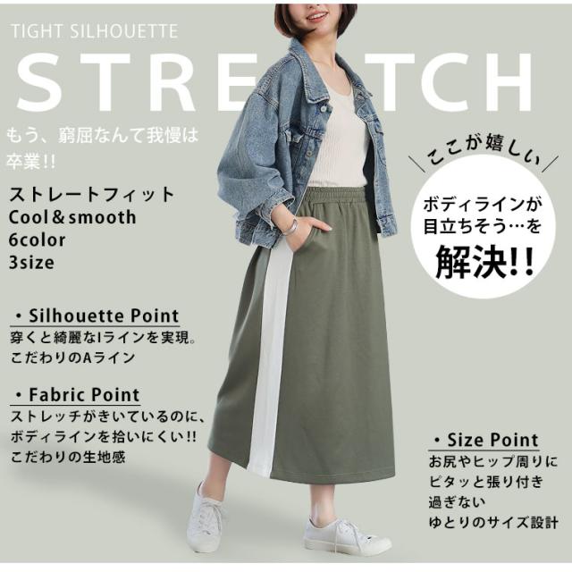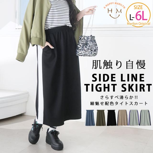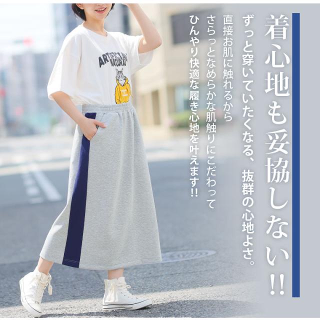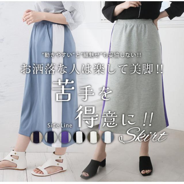 新作 大きいサイズ レディース スカート | さらすべ滑らか! 肌触り自慢のシルケット ひんやり サイドライン スカート [503005] LL 3L 4L 5L 6L