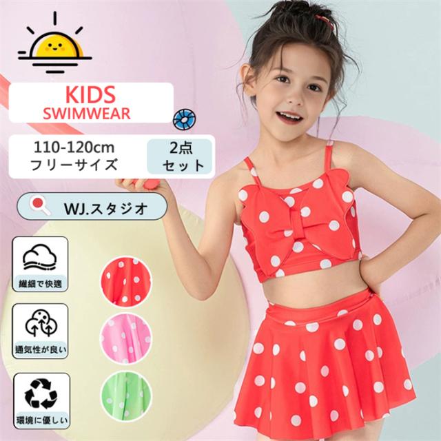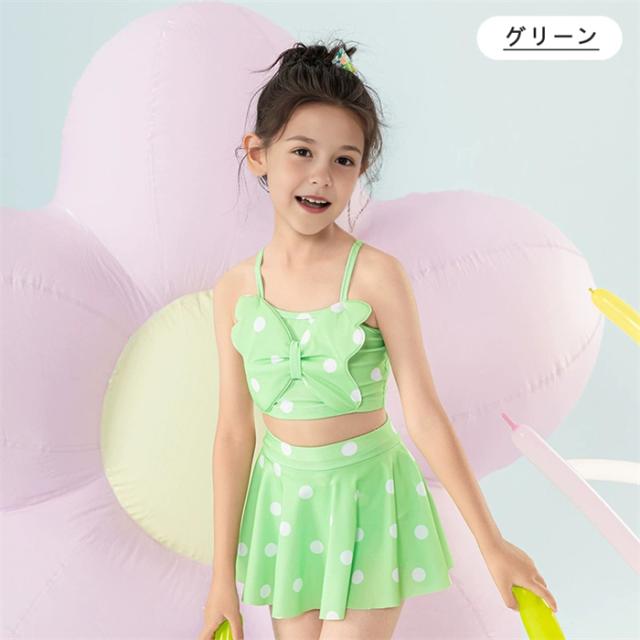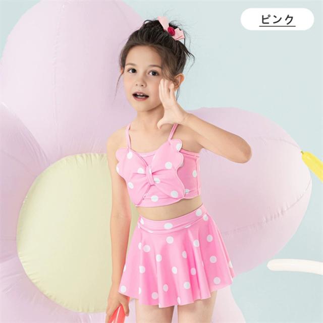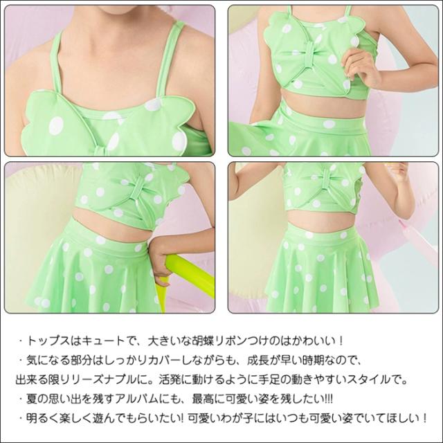 上下セット 女の子 水着 スカート ドット・水玉柄 胡蝶リボン柄 スクール水着 スポーツウエア トップス キッズ 水着 セパレート 子供 水着 スイムウェア タンキニ ジュニア 女の子 水着 ガールズ 子ども用 幼児園 女の子みずぎ スイミング プール 110 120 体型カバー水着