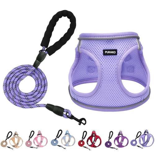PUKAKO 犬 ハーネス 猫 リードセット 胴輪 小型犬 犬用ハーネス 猫用 服 メッシュ素材 身体に優しい 反射材付き 調節可能 お散歩 着脱簡