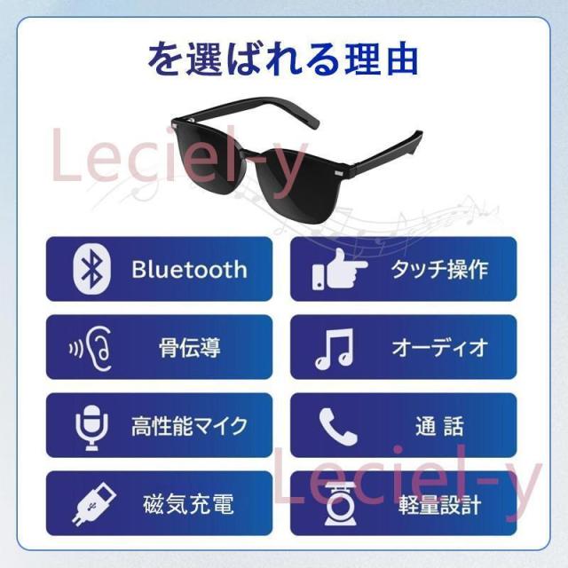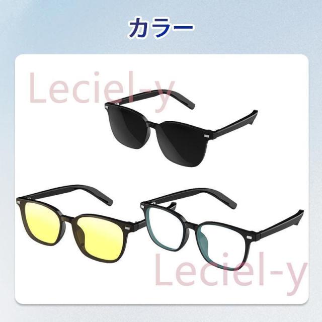 【1つの眼鏡の3つの使い方】<br>透明レンズ——ブルーライト防止<br>サングラスレンズ——紫外線カット<br>ナイトビジョン——夜間の運転はより安全<br><br>まぶしさを解消し、目の疲れを軽減し、目を保護し、視界をクリアにします。<br><br>デュアルスピーカーとステレオ効果音で、ドライブ、スポーツ、仕事に最適です。<br><br>サングラス + ヘッドセットのデザインで、通話に応答/アップ、再生/一時停止、前/曲を再生できます。<br><br>サングラス、オープンイヤーデザイン、鼓膜の損傷なし、ほとんどの人に適しています。<br><br>心ゆくまでワイヤレスで音楽を楽しめ、ハンズフリー通話で運転中の危険を回避できます。