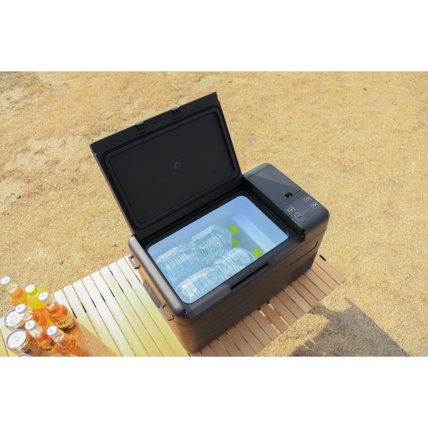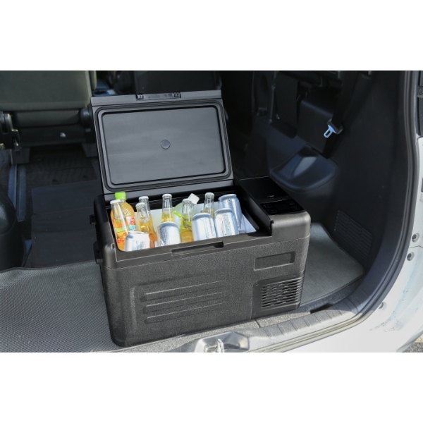 ●家庭用コンセント(AC100V)とシガーソケット(DC12/24V)に対応した小型の冷蔵冷凍庫。