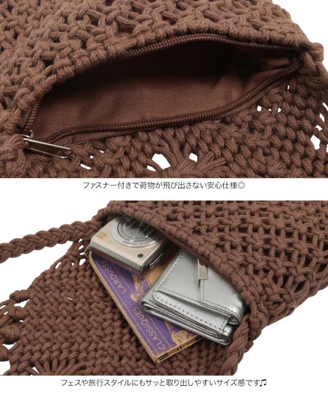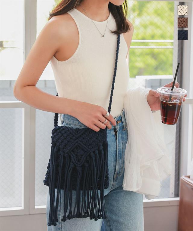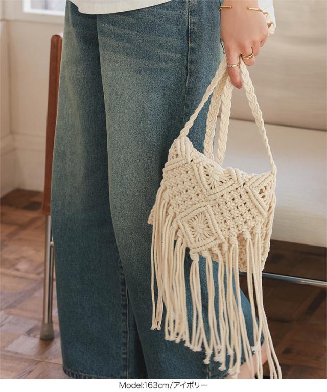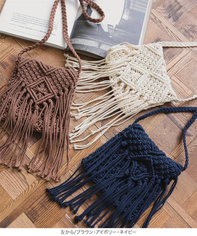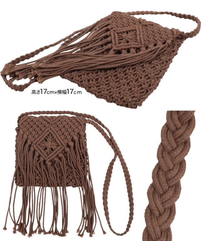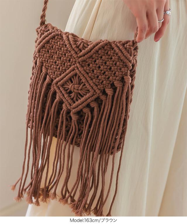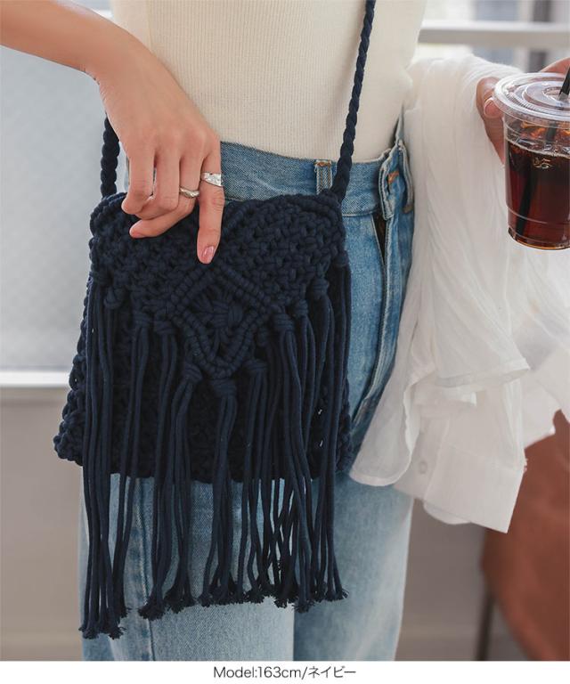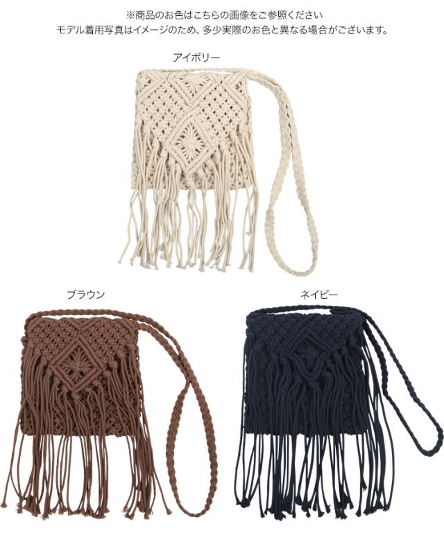 ボヘミアンフリンジショルダーポシェットバッグ B1618 入荷済 レディース 20代 30代 40代 バッグ ショルダーバッグ フリンジ ポシェット クロシェ ニット 夏バッグ ミニバッグ サブバッグ