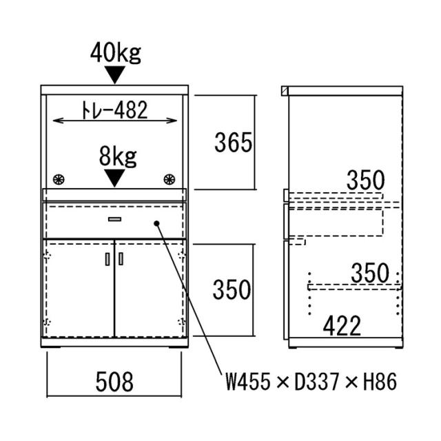 レンジカウンター 幅55×高さ97cm
