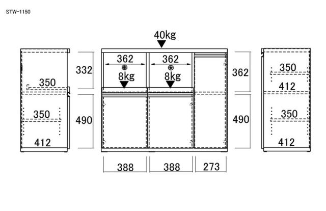 フナモコ キッチンカウンター STW-1150 スーパーホワイト ホワイト キッチンカウンター 炊飯器 電子レンジ レンジ キッチン収納 キッチンボード 幅115 高さ94cm(代引不可)【送料無料】