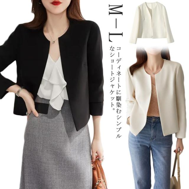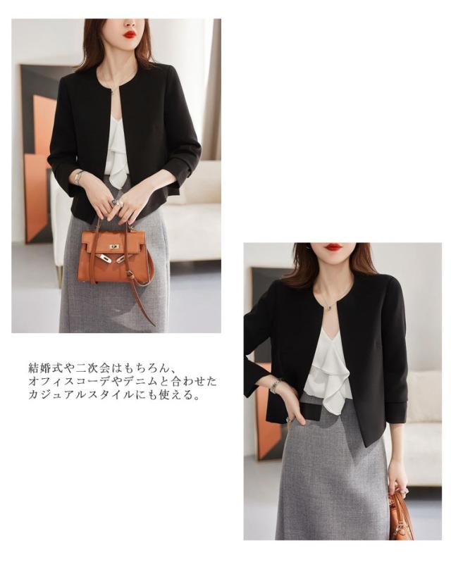 ジャケット 長袖 羽織り 黒 成人式 結婚式 ノーカラージャケット レディース ショートジャケット 二次会 上品 フォーマルジャケット オフィスカジュアル ジャケット 白 フォーマル 同窓会 パーティーボレロ ジャケット ボレロ