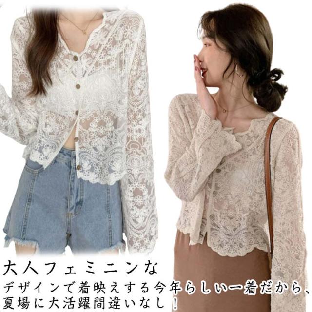 サマーカーディガン ショート丈 レース 長袖 ボレロ 刺? 透かし編み UVカット カーディガン vネック 日焼け止め 送料無料 羽織り 冷房対策 オフィス カジュアル 薄手 トップス コーデ 春夏 レディース