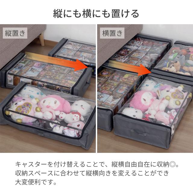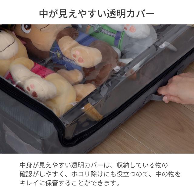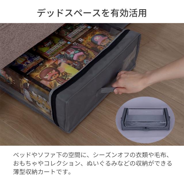 ベッド下収納ケース ぬいぐるみ 収納 ケース 縦置き可能 中身が見える 推し活 フィギュア 収納ボックス 透明窓 キャスター付き 高さ20cm以下 (約)45×75 コレクションケース おしゃれ 収納カート 取っ手付き 衣類収納 布 丈夫 隙間収納 幅44cm 奥行74cm 高さ18cm 1個単品