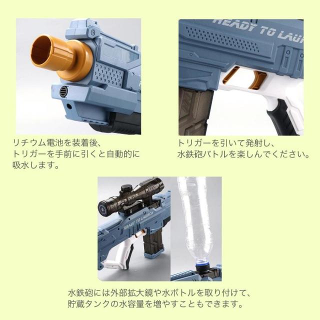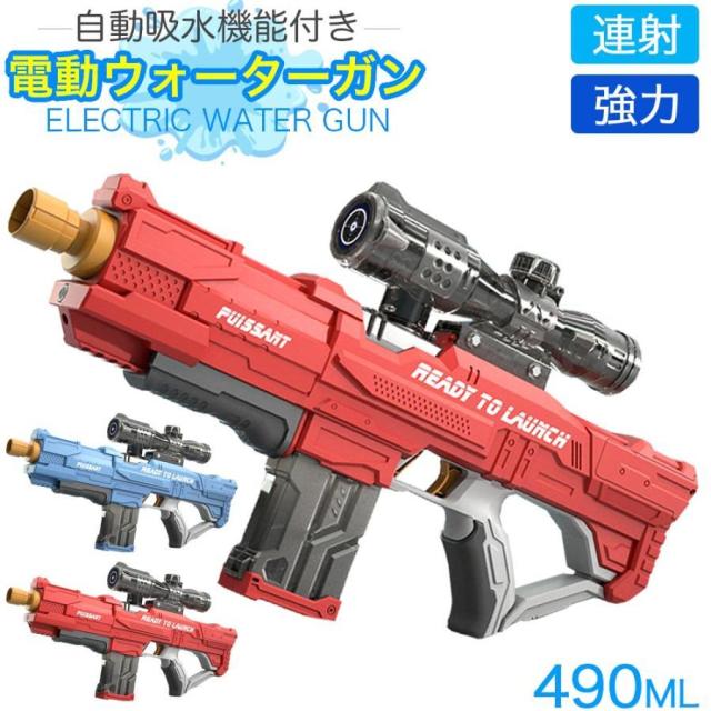 ウォーターガン 電動 水鉄砲 大人 電動水鉄砲 水鉄砲 490ml 強力 子供 電動式連射 自動発射式 おもちゃ 水遊び 夏 プール 川遊び 海 海水浴