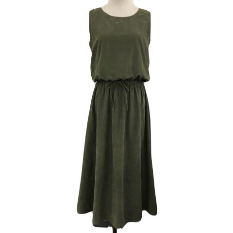 【中古】アズノウアズ ワンピース フレア ロング スエード調 ウエストゴム ウエストリボン 無地 ノースリーブ 緑