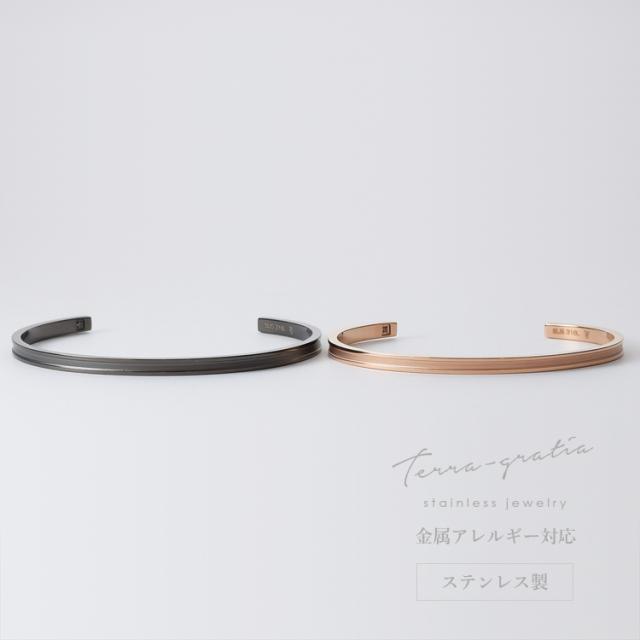 ペアバングル カップル 刻印 つけっぱなし 金属アレルギー対応 ステンレス シークレットダイヤモンド 大人 シンプル マットライン ガンメタルブラックカラー ローズゴールドカラー テラグラティア Terra-gratia PairBangle lstb013gun_rg_pair