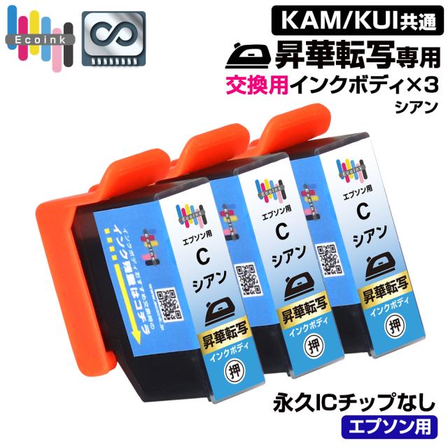 【永久ICチップ 交換用ボディ C シアン×3個】 昇華転写 専用 インクカートリッジ シアン単品 C【こちらの製品だけでは使用できません。】KAM KUI オリジナル エプソン用 ブラック 昇華 熱転写 グッズ カスタム