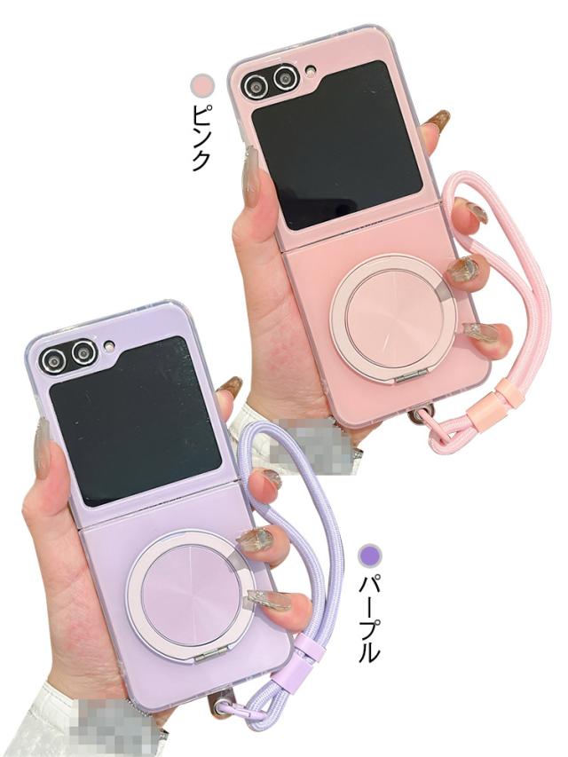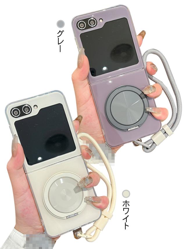 Galaxy Z Flip7 ケース カバー 折りたたみ型 プラスチック ハードケース 一体型スマホリング付き スタンド機能 ストラップ穴 ストラップ付き Samsung サムスン ギャラクシー Z フリップ7 保護ケース アンドロイド おすすめ おしゃれ