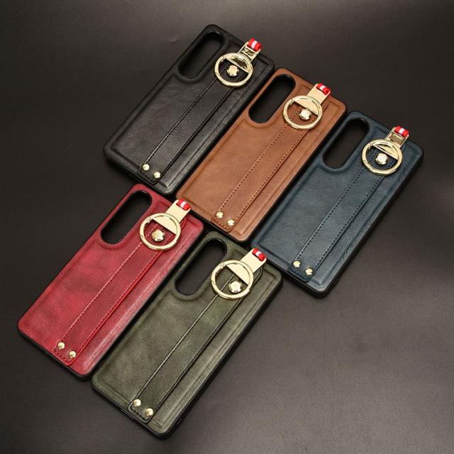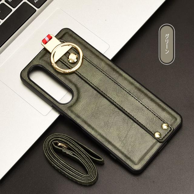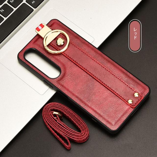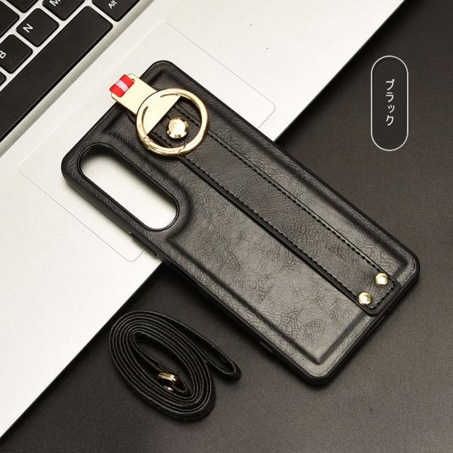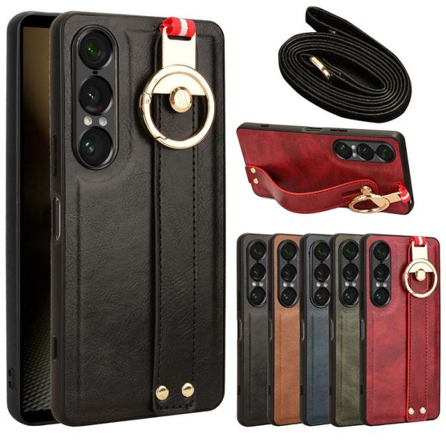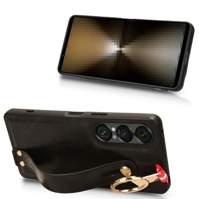Xperia 1 VII ケース ケース 耐衝撃 カバー PUレザー+プラスチック 持ち手 ベルト 落下防止ベルト ストラップ付き リング付き 可愛い/かわいい エレガント レディース スマホベルト 片手操作 取っ手 シンプル Sony ソニー エクスぺリア1 VII