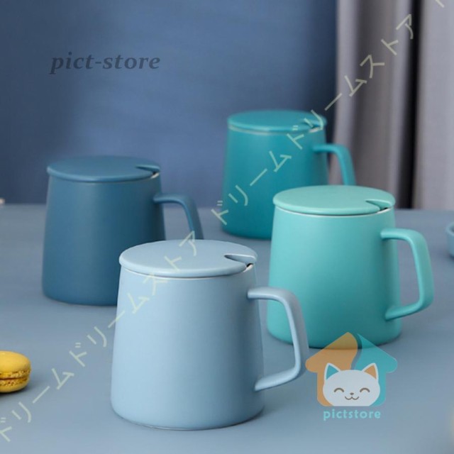 マグカップ 保温 大容量 蓋つき シンプル コーヒーマグ カップ マグ 北欧 無地 釉薬 スプーン付 陶器 新生活 誕生日 400ml 結婚祝い コーヒー ギフト