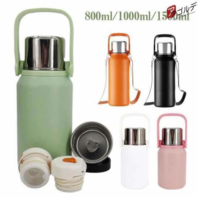 水筒 大容量 800ml 1L 1.5L 保温 保冷 マグボトル コップ付き キッズ 大人 真空断熱 ボトル 魔法瓶 軽い 持ち手 ストラップ 付き 茶こし付き 軽量 おしゃれ 真空ボトル ステンレス 水筒 1リットル 子ども用 大人用 1000ml 1500ml