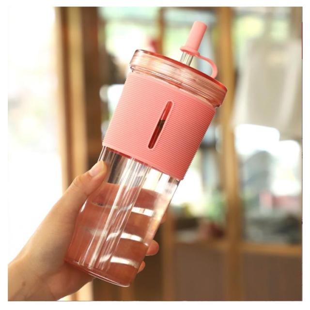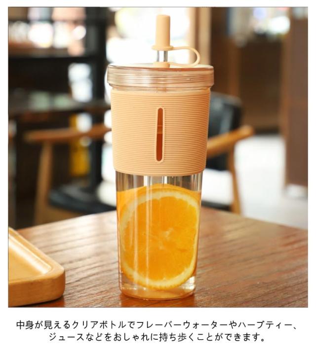 ストロー付き ジュース 透明 タンブラー 水筒 クリアボトル ボトル タンブラー 2層構造 700ml 漏れない 持ち運び おしゃれ 蓋付き コーヒー ストローカバー付き ウォーターボトル 大人 子供 アウトドア ユニセックス シンプル かわいい