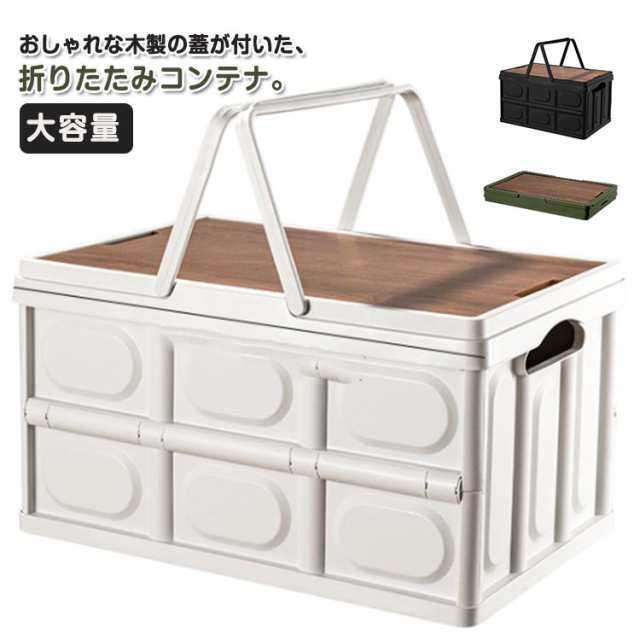 コンテナボックス 屋外 折りたたみコンテナ 折りたたみコンテナ ふた付き 取っ手付き 30L 収納ボックス フタ付き 木製蓋付き 大容量 折りたたみ 多機能 折り畳み おもちゃ箱 アウトドア キャンプ ストレージボックス ブラック ホワイト グリーン 送料無料