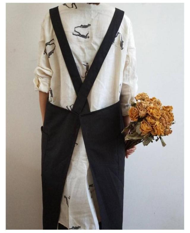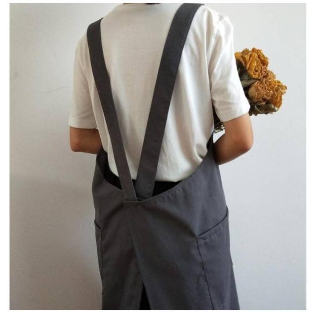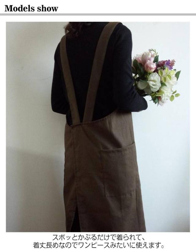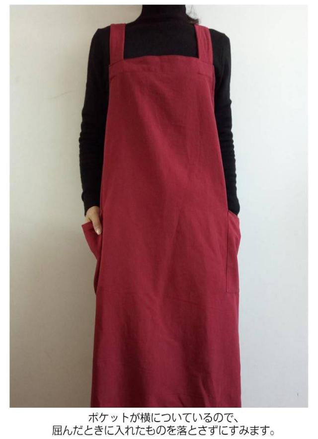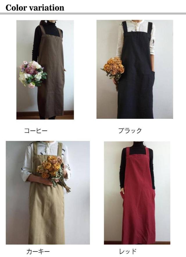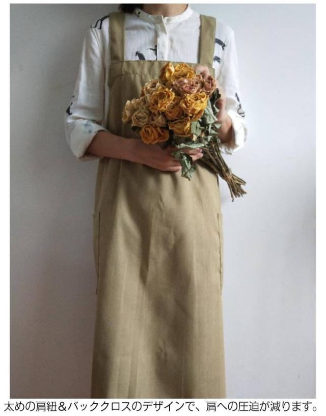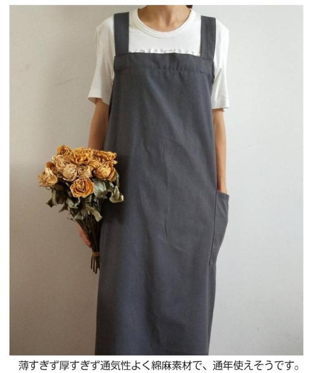 | シンプルで実用的な綿麻素材のクロスエプロン スポッとかぶるだけで着られて、着丈長めなのでワンピースみたいに使えます。 薄すぎず厚すぎず通気性よく綿麻素材で、通年使えそうです。 ポケットが横についているので、屈んだときに入れたものを落とさずにすみます。 太めの肩紐&バッククロスのデザインで、肩への圧迫が減ります。 | |
