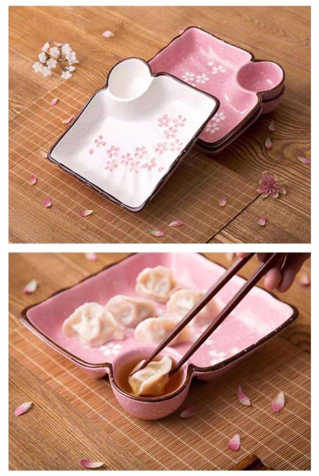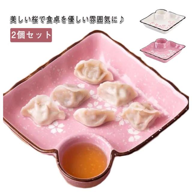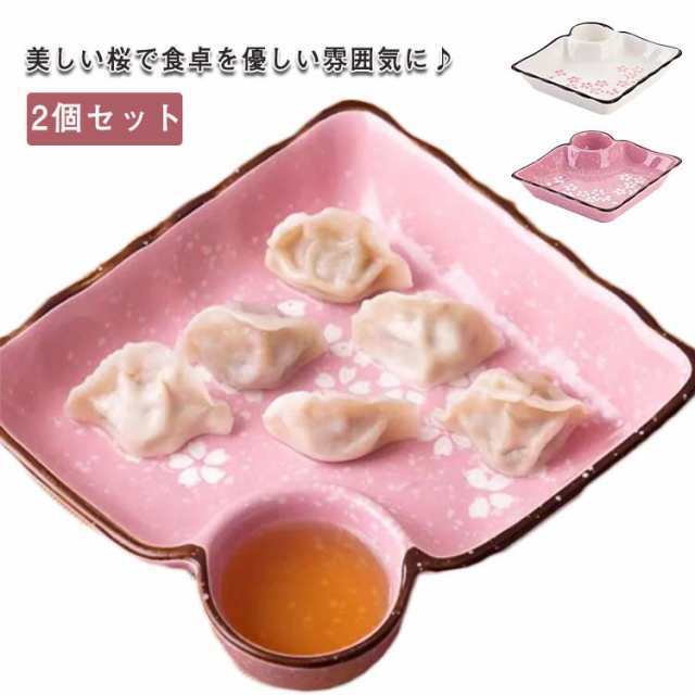 ギョーザ皿 仕切り皿 セラミック製 2個セット お皿 プレート 揚げ物皿 盛り皿 寿司皿 刺身皿 副菜皿 餃子皿 タレスペース付き さくら 和食器 陶器 業務用食器 飲食店 食器 醤油皿 一人用 サラダ スープ ボウル プレート