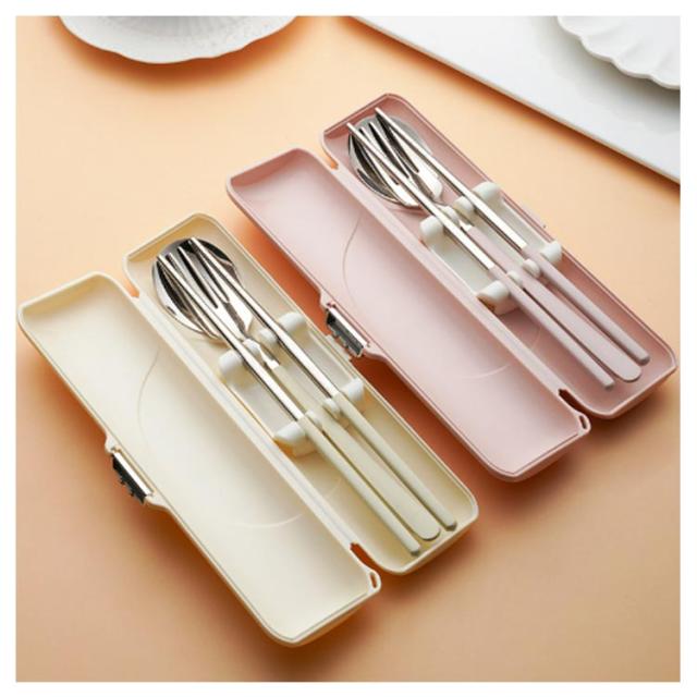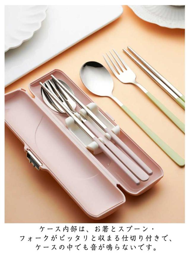カトラリーセット 弁当用 お弁当用 携帯用カトラリーセット 音が鳴らない フォーク スプーン 箸 持ち運び収納ケース 4点セット ステンレ