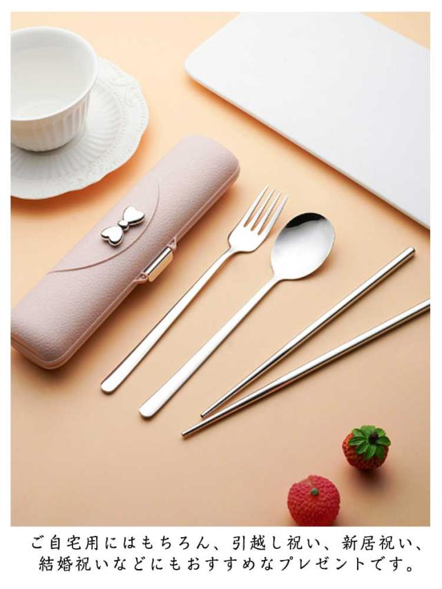 | フォーク、スプーン、箸を気軽に持ち運べるケース入りのカトラリーセット。 持ち手部分が長めに、幅は細見に設計されており、デザートやスープをすくう時も、持ち手部分が汚れにくいのがポイントです。 ケース内部は、お箸とスプーン・フォークがピッタリと収まる仕切り付きで、ケースの中でも音が鳴らないです。 ご自宅用にはもちろん、引越し祝い、新居祝い、結婚祝いなどにもおすすめなプレゼントです。 | |