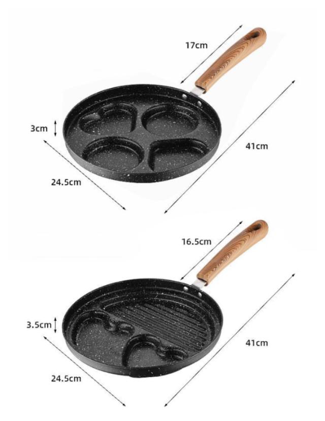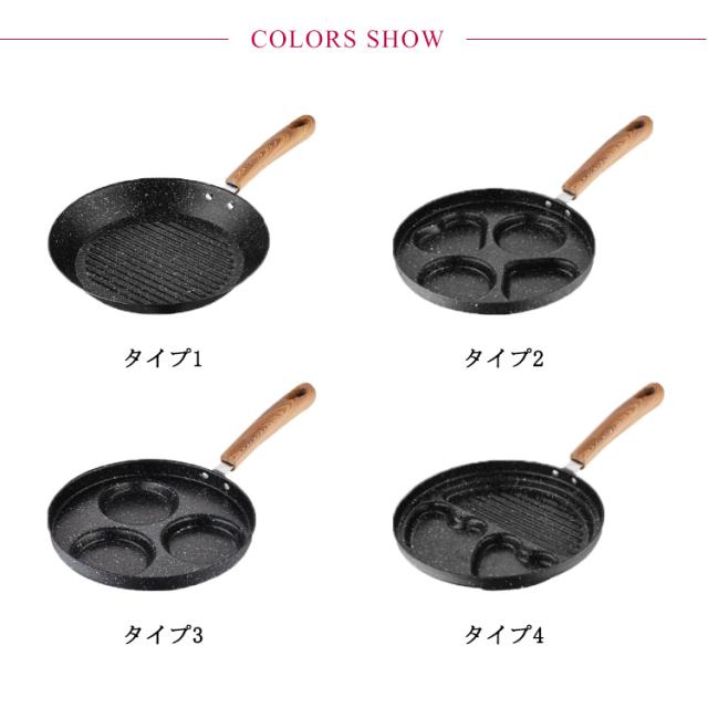 | フライパンが4つに区切られているので、お弁当のおかず作りに便利です。 形がハート型+丸型になっているので、デザートなどの型として使えます。 | |